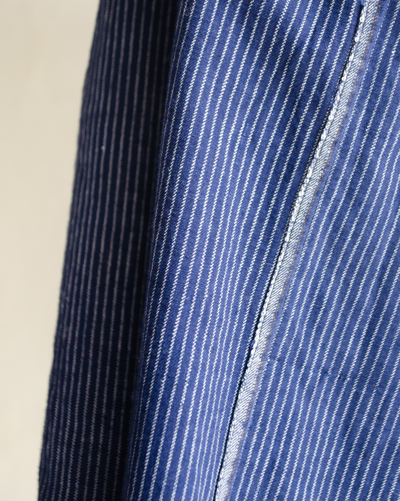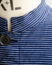 スタンドカラーにストライプの織り柄の入り方、